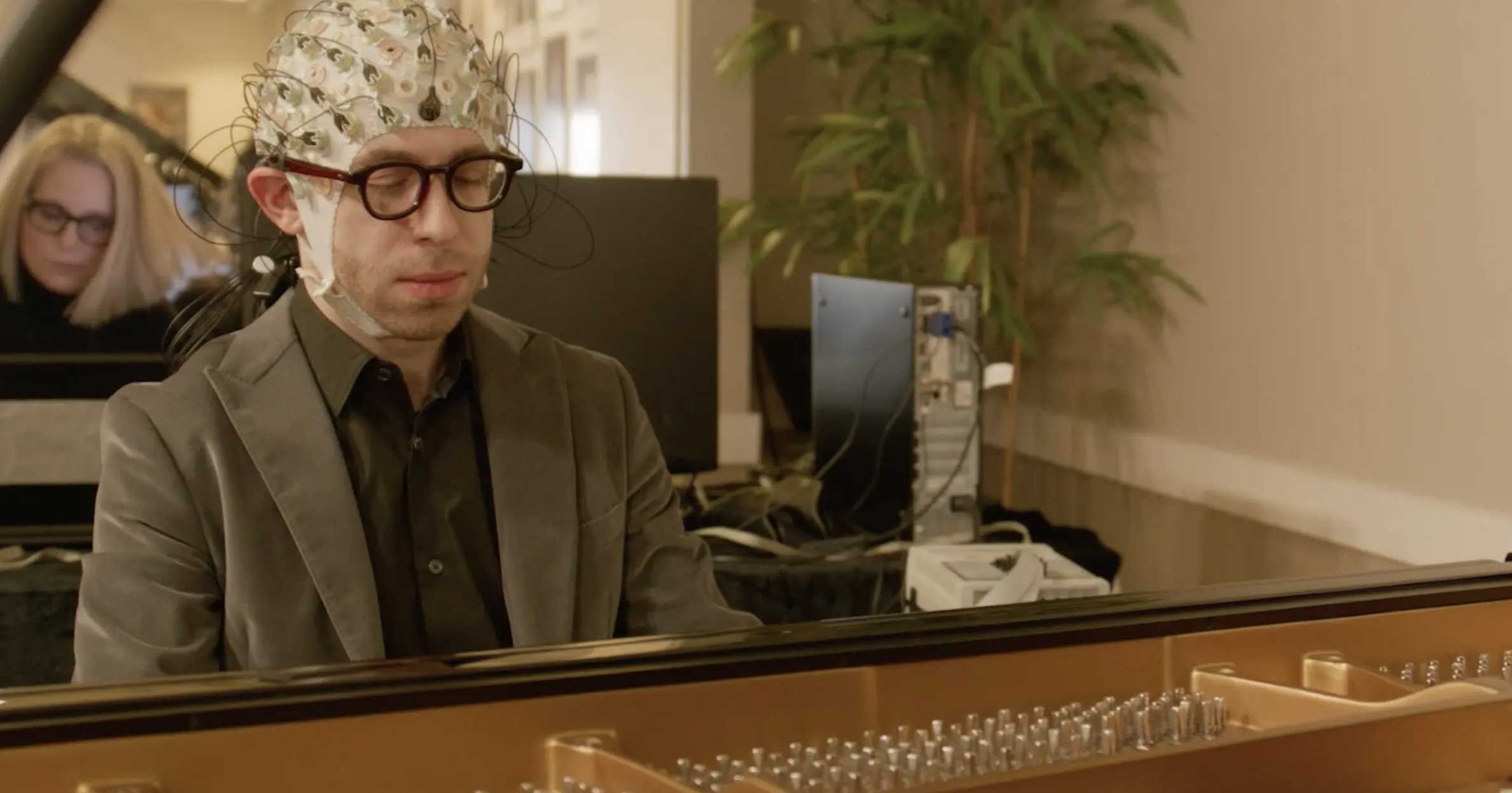 Steinway artist Nicolas Namoradze recording in an EEG cap.Credit...DDG, via Nicolas Namoradze